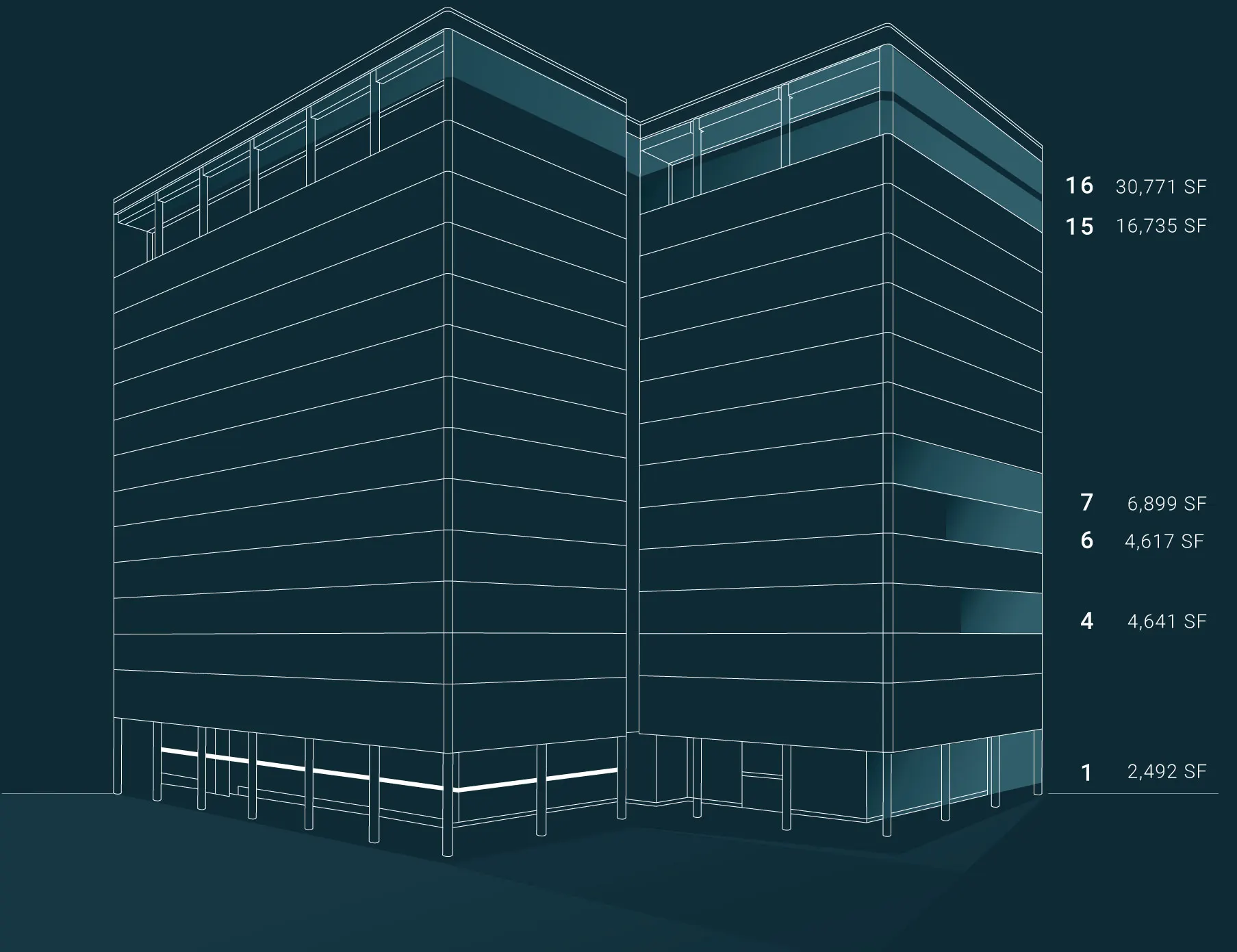 Our best in class amenities include an in-building fitness center, lobby bar & cafe, marketplace cafeteria, conference facilities, outdoor amenity terrace, 8 electric car charging stations and on-site management.